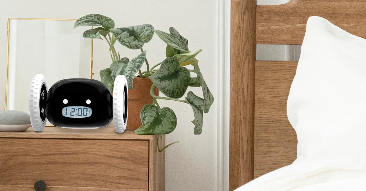 Clocky is the runaway alarm clock that jumps off of your nightstand & runs around beeping, determined to get you out of bed and ready for your day.