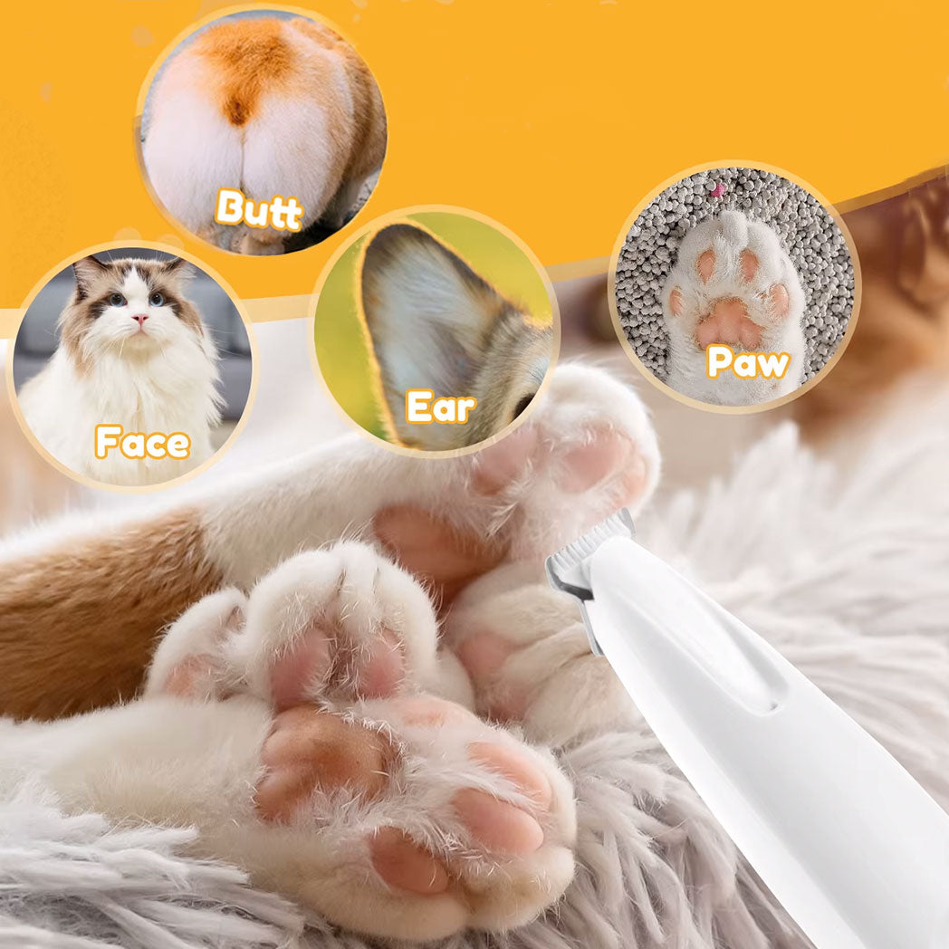 The trimmer is designed for delicate areas like paws, ears, and face. Its gentle blades ensure no pulling or irritation, providing a safe grooming experience. Perfect for keeping your pet comfortable during every session.